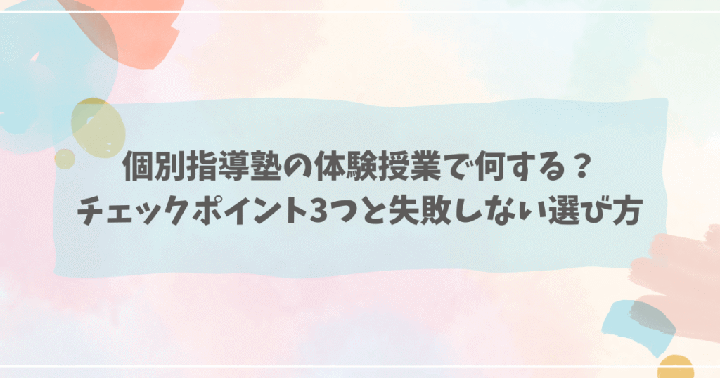 個別指導塾の体験授業で何する?チェックポイント3つと失敗しない選び方