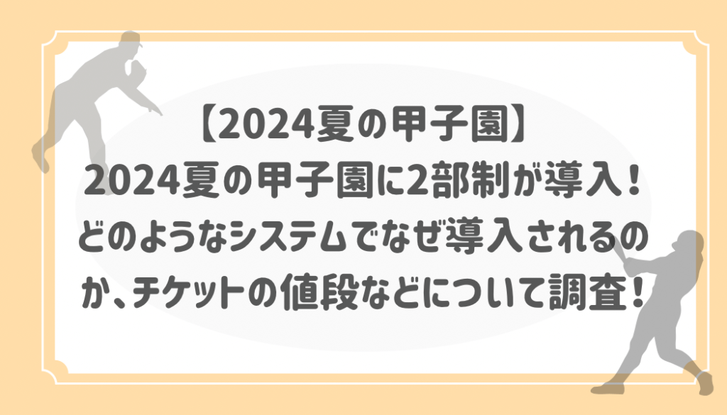 【甲子園】2024夏の甲子園に2部制が導入!どのようなシステムでなぜ導入されるのか、チケットの値段などについて調査!