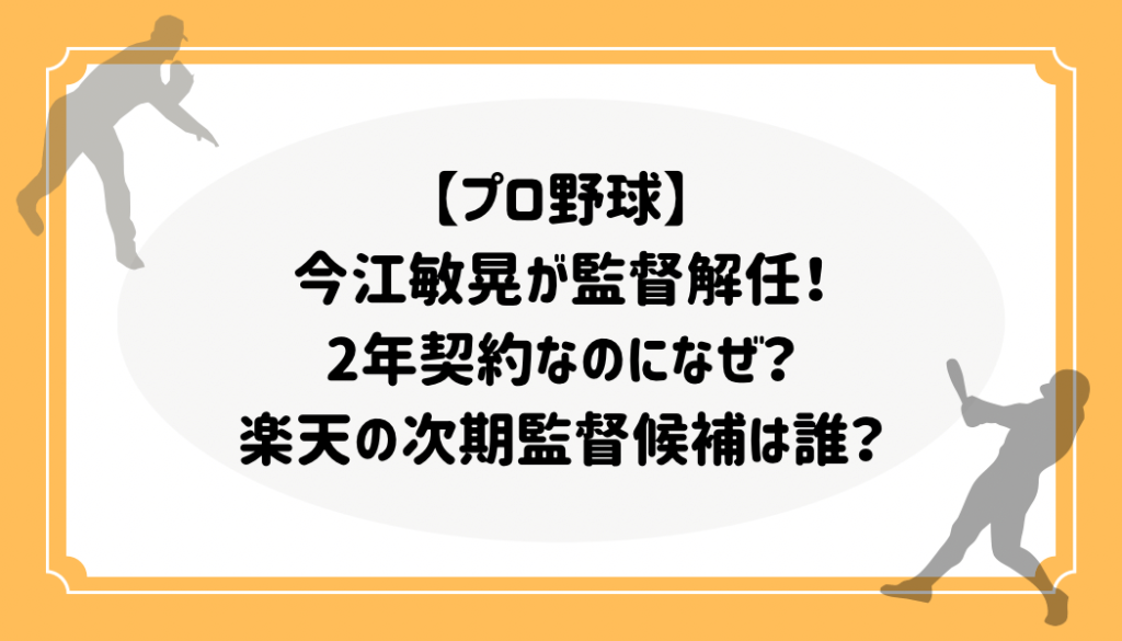 2024年プロ野球・楽天の監督を務めていた今江敏晃さんが監督解任となることが報道されました。 今江敏晃さんは楽天の監督を2年契約で結んでいましたが、なぜ1年限りで監督解任となってしまうのでしょうか? また、今江敏晃さんの後任となる楽天の次期監督... -