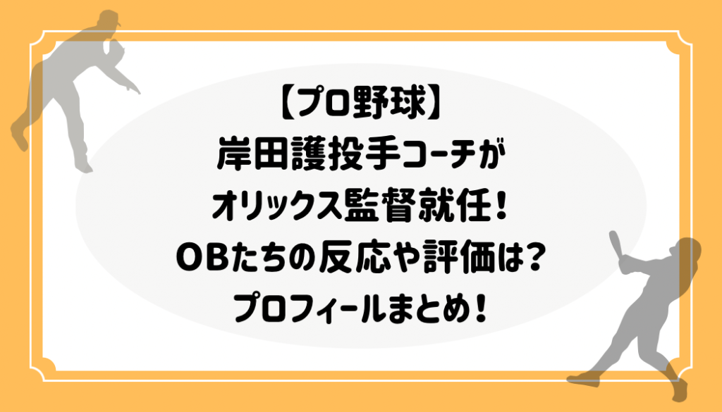 【プロ野球】岸田護投手コーチがオリックス監督就任!OBたちの反応や評価は?プロフィールまとめ!