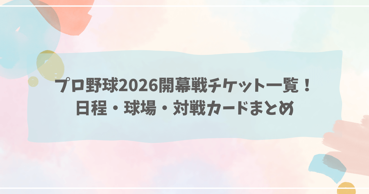 プロ野球2026開幕戦チケット一覧!日程・球場・対戦カードまとめ