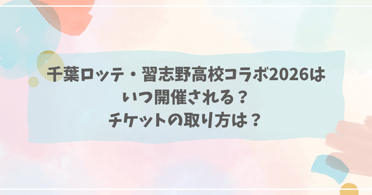 千葉ロッテマリーンズと習志野高校とコラボをしているのは「ALL FOR CHIBA FES」の日程となっているため、例年通りであれば、2026年6月19日(金)の楽天戦で開催されるのではないかと予想します。