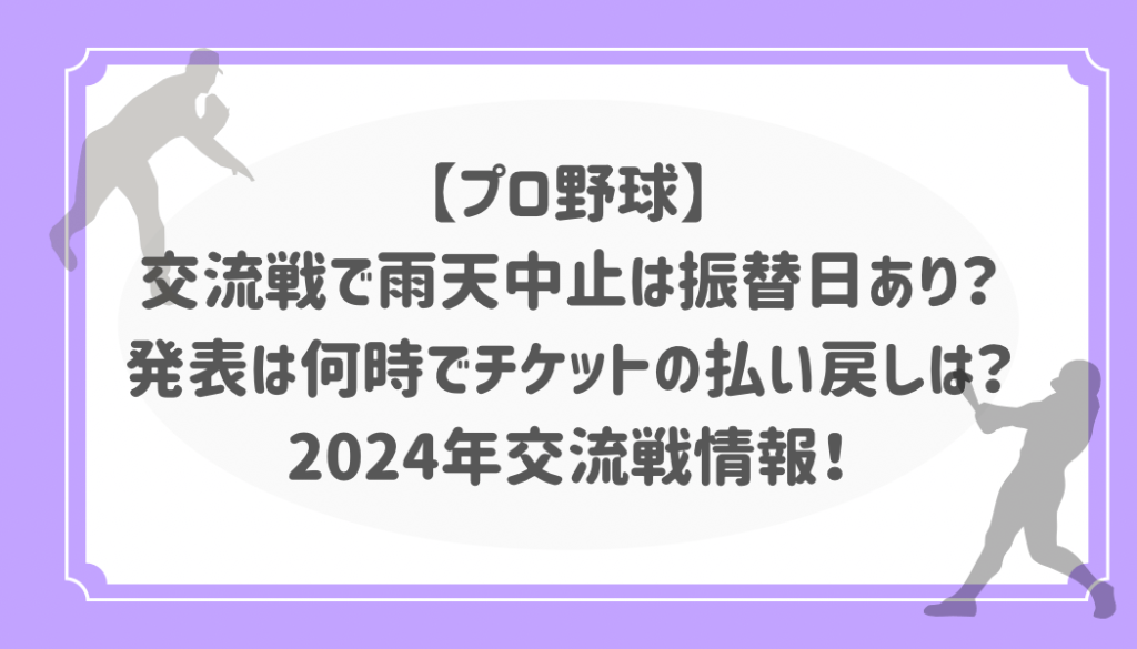 【プロ野球】交流戦で雨天中止は振替日あり?発表は何時でチケットの払い戻しは?2024年交流戦情報!