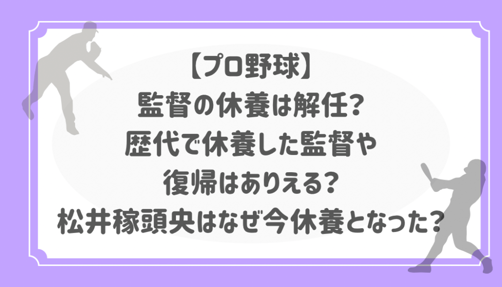 【プロ野球】監督の休養は解任?歴代で休養した監督や復帰はありえる?松井稼頭央はなぜ今休養となった?