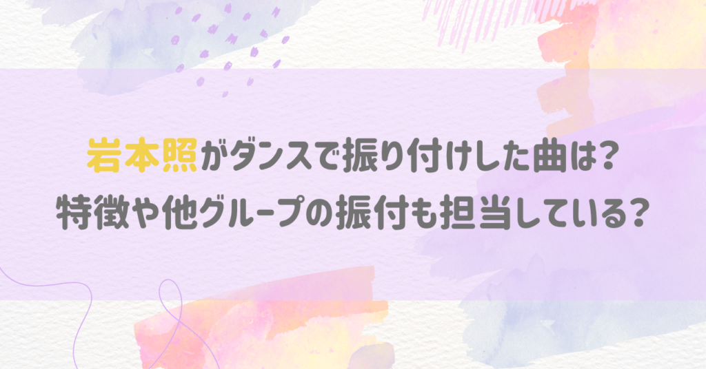 【SnowMan】岩本照がダンスで振り付けした曲は?特徴や他グループの振付も担当している?