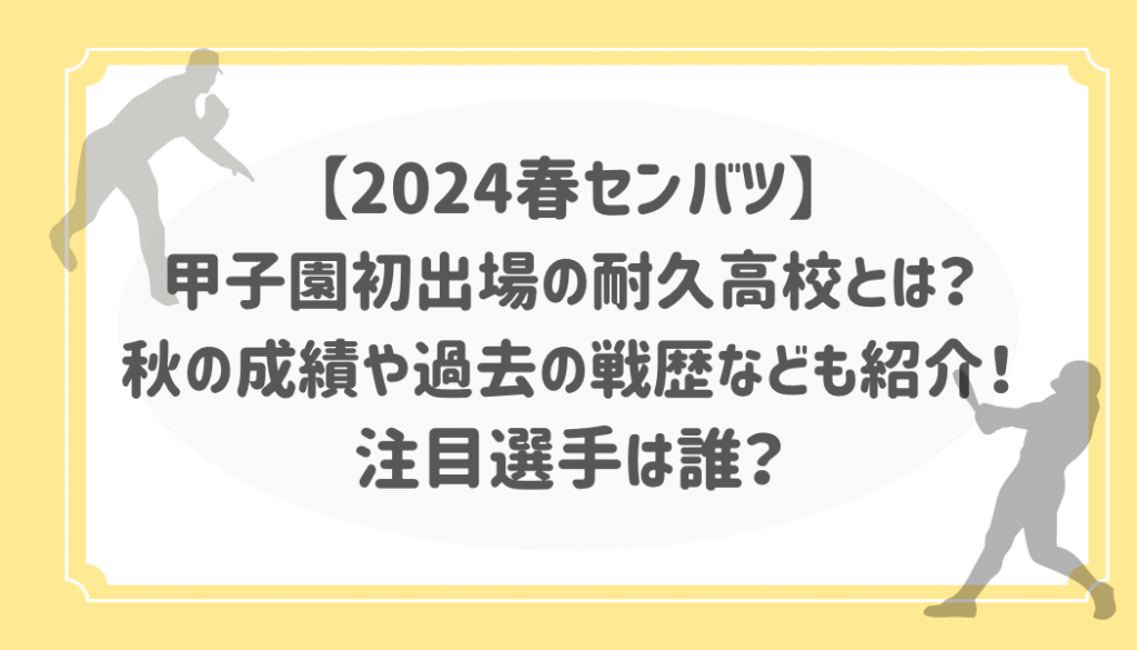 【2024春センバツ】甲子園初出場の耐久高校とは?秋の成績や過去の戦歴なども紹介!注目選手は誰?