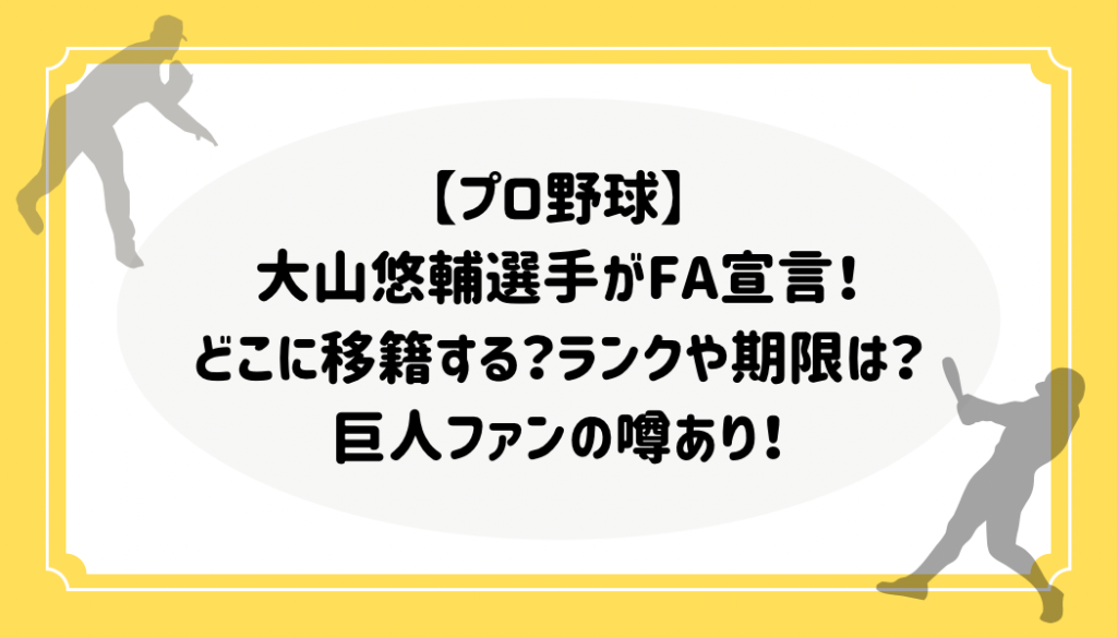 2024年の日本シリーズも終了し、FA宣言が解禁される時期となってきました。 中でも阪神タイガースに所属している大山悠輔選手がFA宣言をするということで、話題となっていますがどこに移籍する可能性があるのでしょうか? 大山悠輔選手のランクや期限につ... -