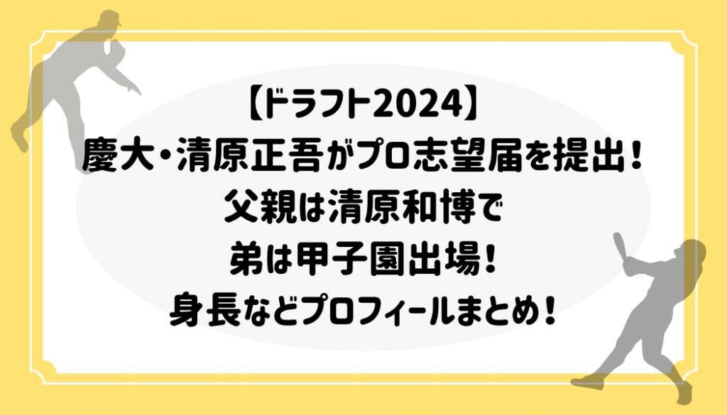 【ドラフト2024】慶大・清原正吾がプロ志望届を提出!父親は清原和博で弟は甲子園出場!身長などプロフィールまとめ!