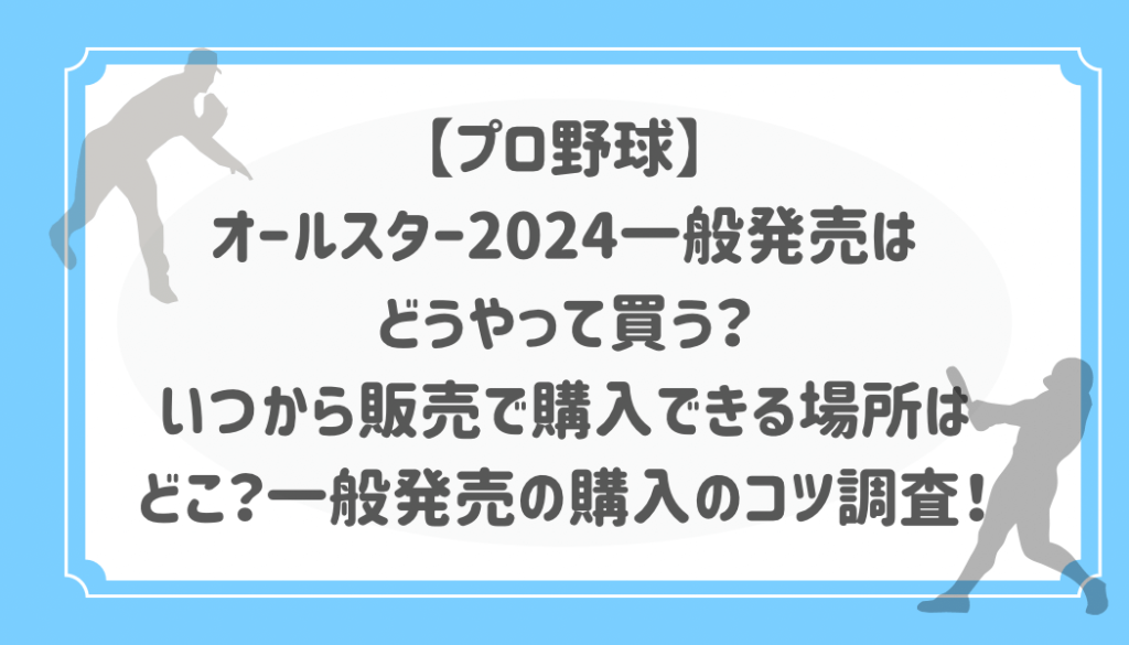 プロ野球オールスター2024が、2024年7月23日(火)、24日(水)に開催されます。 すでにFC先行申込や先行抽選受付は終了していますが、今後行きたくなった場合には一般発売を狙うこともできます。 いつから販売されるのか、購入できる場所はどこなのか、一... -