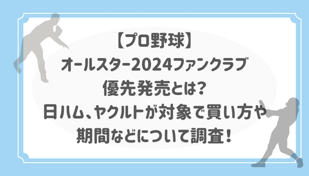 【プロ野球】オールスター2024ファンクラブ優先発売とは?日ハム、ヤクルトが対象で買い方や期間などについて調査!